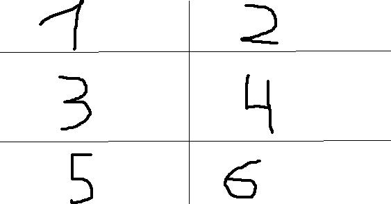 <table width="100%" height="100% "border="1"><tr><td colspan=2><center> 1 </center></td></tr><tr><td><center> 2 </center></td><td><center> 3 </center></td></tr><tr><td><center> 4 </center></td><td><center> 5 </center></td></tr></table>